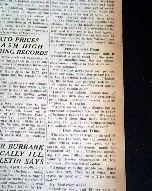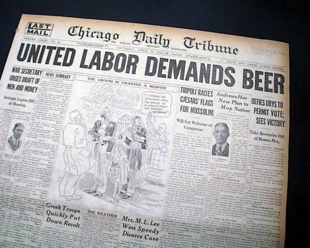 The front page has a nice banner headline: "UNITED LABOR DEMANDS BEER" with subheads. (see images) Nice for display for any tavern or home bar.