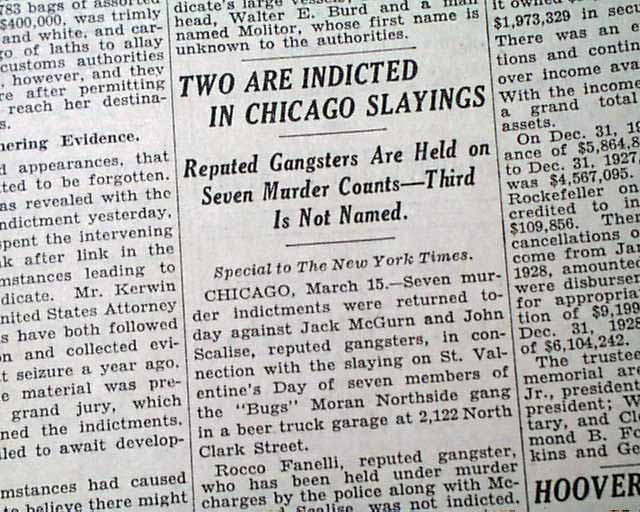 St. Valentine's Day Massacre investigation in a Chicago newspaper...