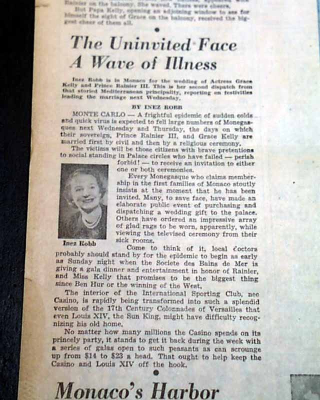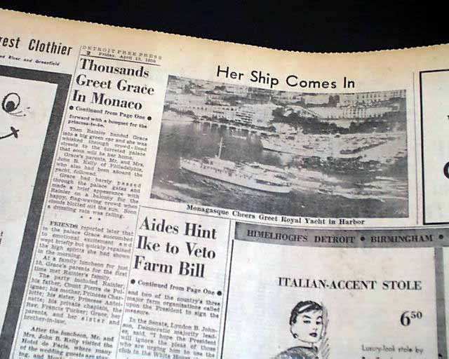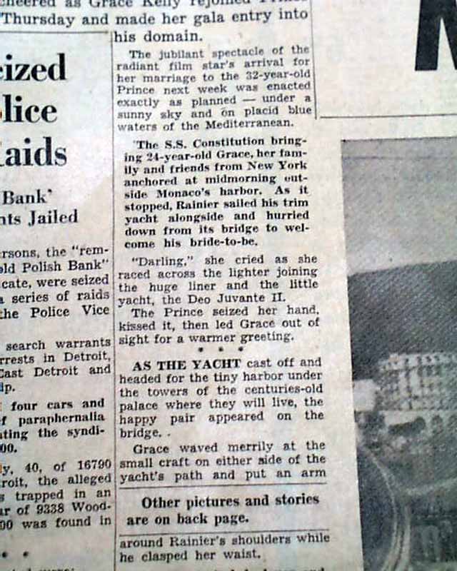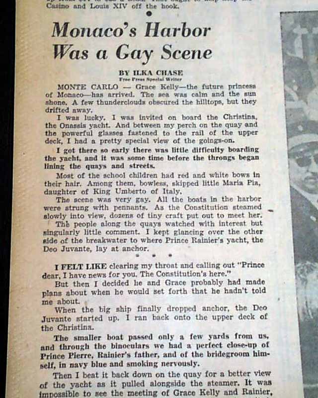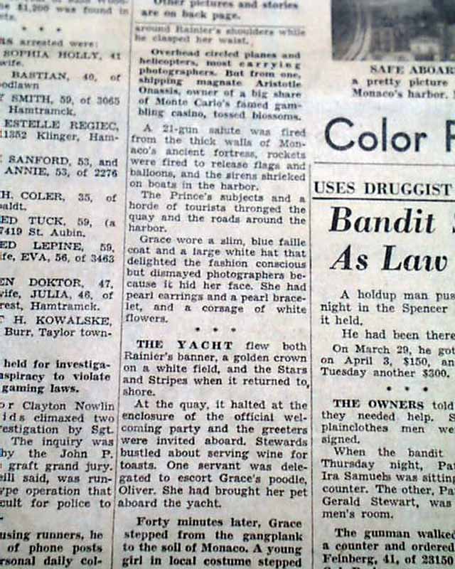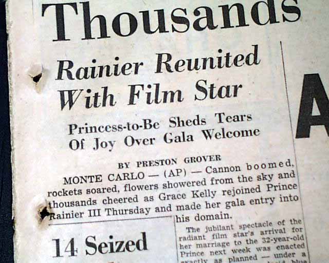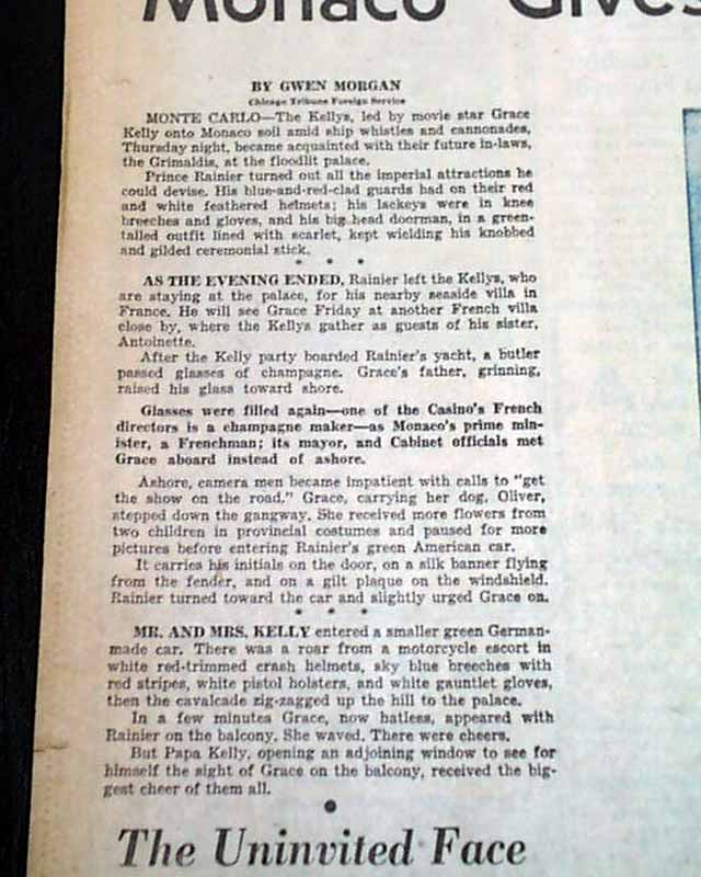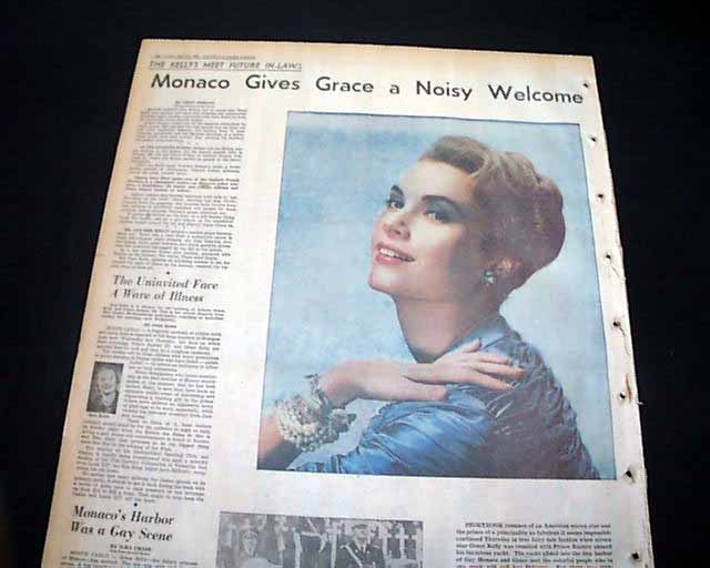 The front page has a banner heading: "Thousands Cheer Grace in Monaco" with subheads and related photo. (see images) Another related photo on page 2. And the back page has more with a nice color photo of Kelly.