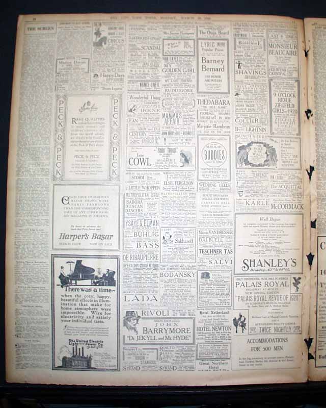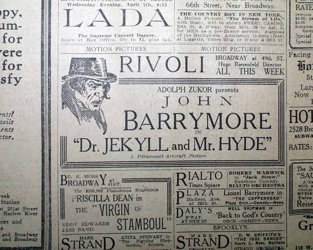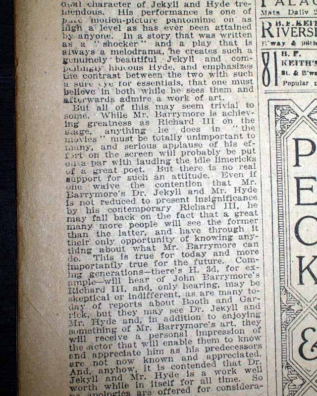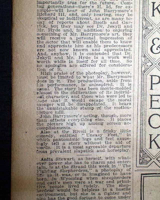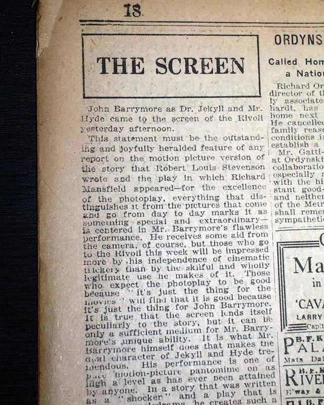 Page 18 has a review and small ad for the premier of "Dr. Jekyll and Mr. Hyde", staring John Barrymore.