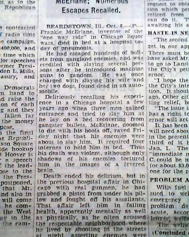 Frank McErlane death.... Chicago gangster...