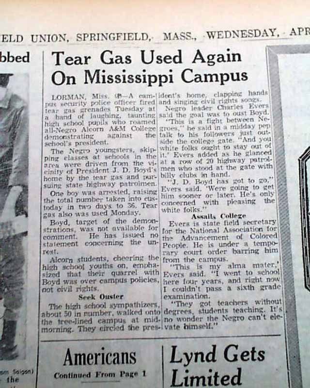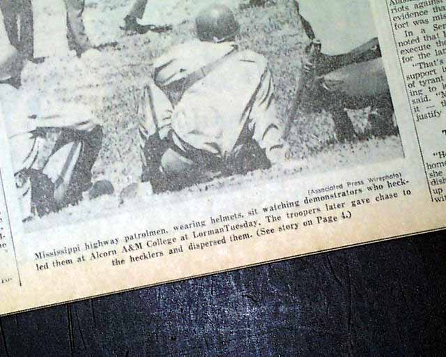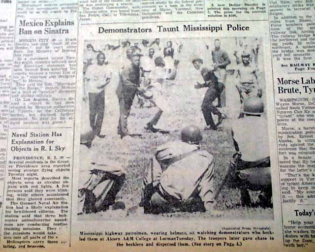 The front page has a three column photo with heading: "Demonstrators Taunt Mississippi Police"