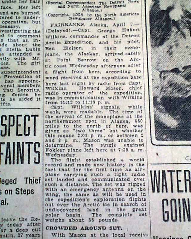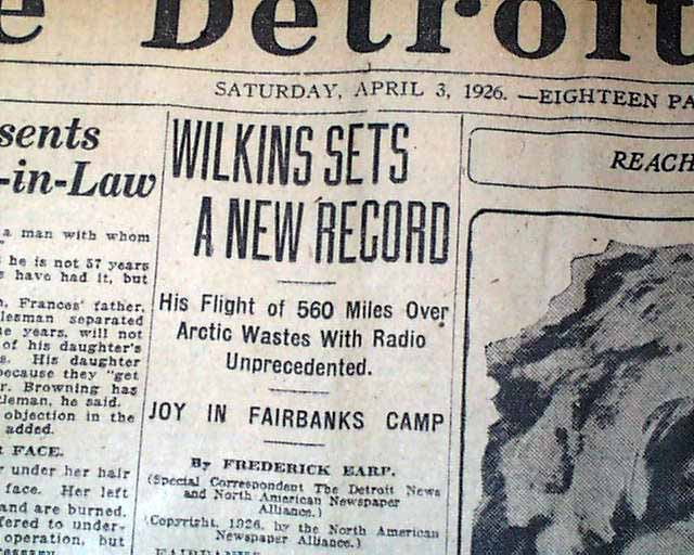 1926 Hubert Wilkins record Arctic ariplane flight...