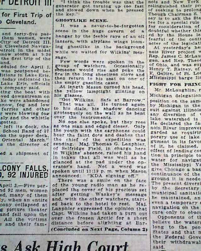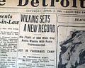 The top of the front page has a one column heading: "WILKINS SETS A NEW RECORD" with subheads and two photos. (see images)